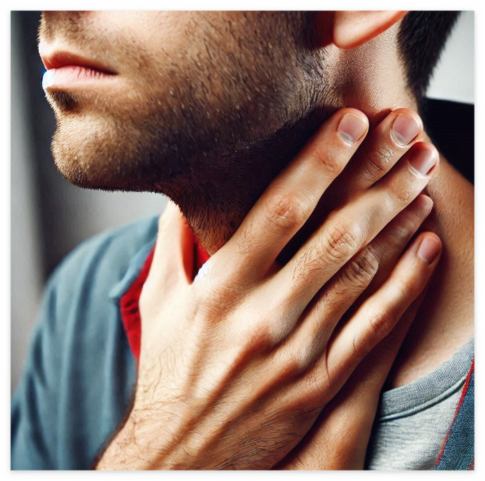 위산이 식도로 역류하면서 목과 기도를 자극해 가래가 생깁니다. 가래와 함께 속 쓰림이나 목 이물감이 동반됩니다.