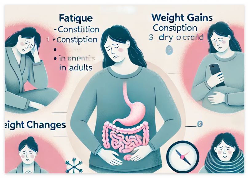 갑상선 기능 저하증은 소화 시스템에도 영향을 미쳐 변비를 유발할 수 있습니다. 이는 장운동이 느려지고 소화 기능이 저하되면서 발생합니다.