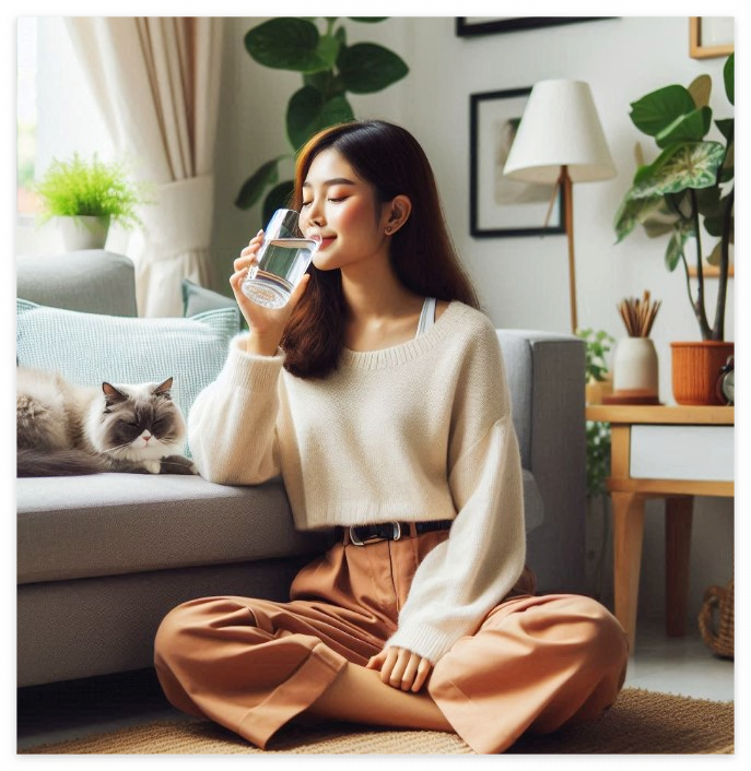 물을 조금씩 천천히 마시면 신장에 부담을 줄이고 체내 흡수가 원활하게 이루어집니다. 공복에 약 200~300ml의 물을 천천히 나누어 마셔 보세요.