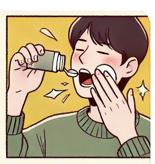 • 알코올이 없는 가글제: 알코올이 포함되지 않은 가글제를 사용해 입안을 헹구면 구내염 치유에 도움이 됩니다.