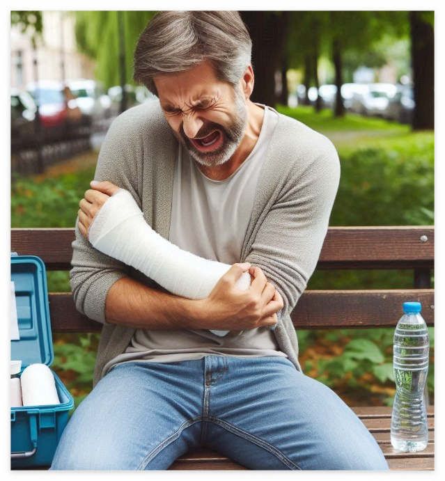 팔이나 다리 골절 시 응급처치를 하고, 병원에서 적절히 고정 치료를 받습니다.