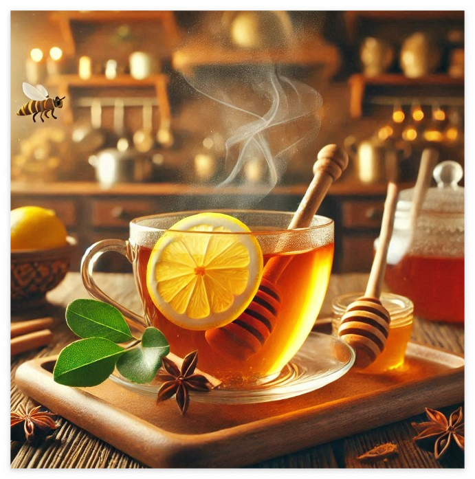 꿀은 목을 진정시키는 데 탁월한 효과가 있어요. 생강이나 레몬과 함께 섭취하면 기침을 줄이고 목을 부드럽게 만들어줍니다.