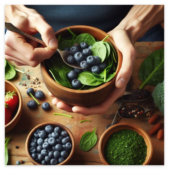 - 시금치, 케일: 항산화 성분 루테인과 지아잔틴이 풍부.
