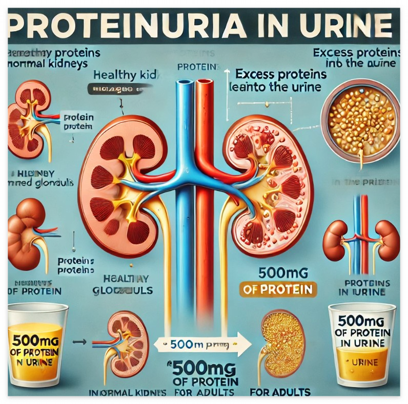 하지만 신장의 기능이 저하되면 단백질이 소변으로 빠져나가며, 이 상태를 단백뇨라고 합니다. 성인의 경우 하루 500mg 이상의 단백질이 소변으로 배출되면 단백뇨로 진단됩니다.