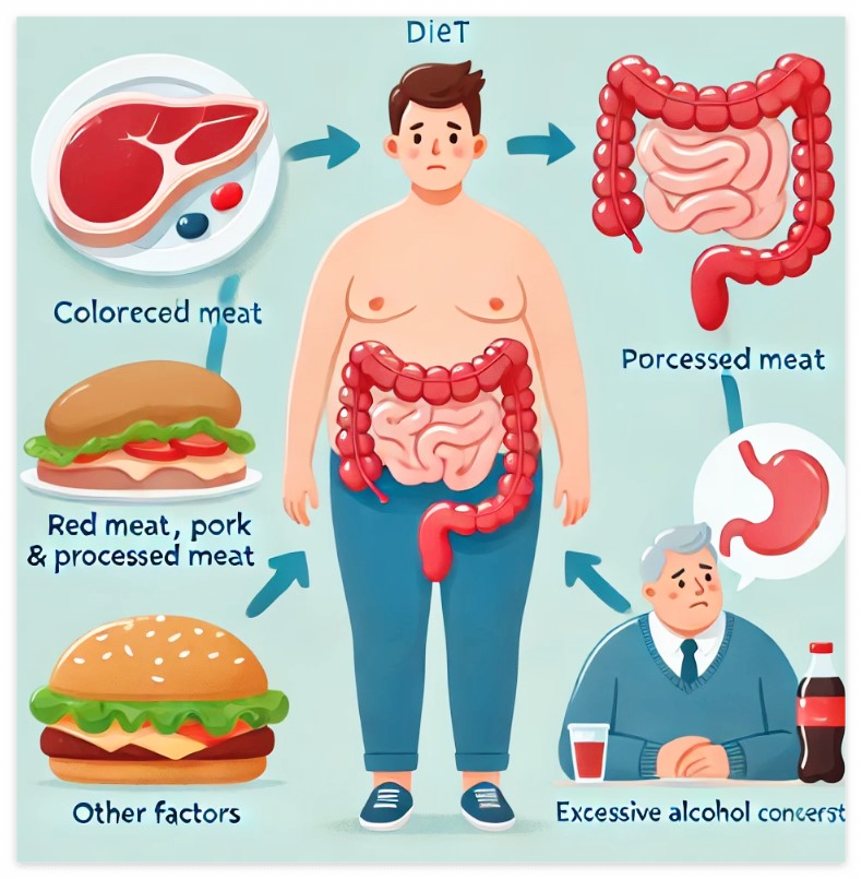 대장암의 발병 원인은 다양하지만, 주요 위험 요인 중 일부는 우리가 조절할 수 있습니다. 대표적으로 식습관과 생활습관이 큰 영향을 미칩니다.