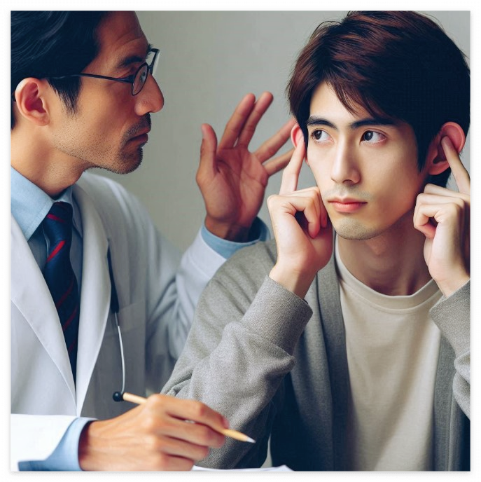 단어나 문장을 들려주고 반복하게 하여 청력이 얼마나 손상되었는지 확인합니다.