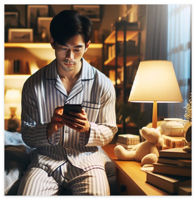 스마트폰, 컴퓨터, TV 등에서 나오는 블루라이트는 멜라토닌 분비를 억제해 수면을 방해합니다. 자기 전 2시간 정도는 전자기기 사용을 줄여보세요. 저는 자는 시간에 스마트폰을 멀리 하니 잠들기까기 걸리는 시간이 확 줄어들었어요.