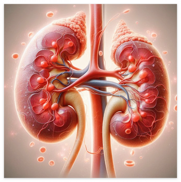 신장 결석은 작은 돌이 신장에 생겨 요로를 자극하거나 손상시켜 혈뇨를 유발하는 경우입니다. 돌이 작을 때는 통증이 경미할 수 있지만, 커지면 요로를 막거나 심한 통증을 동반하기 때문에 돌을 제거하거나 약물 치료가 필요할 수 있어요.