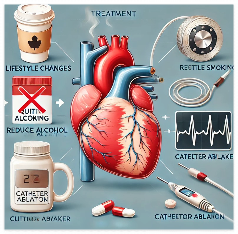 - 약물치료: 베타차단제, 칼슘 채널 차단제, 항부정맥제 등을 사용하여 심장 박동을 조절합니다.