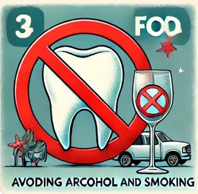 - 흡연: 흡연은 상처 부위에 혈액 공급을 방해해 회복을 지연시키고, 드라이 소켓(dry socket)이라는 합병증을 유발할 수 있습니다. 가능한 한 흡연을 중단하거나 최소한 72시간 동안은 금연하는 것이 바람직합니다.