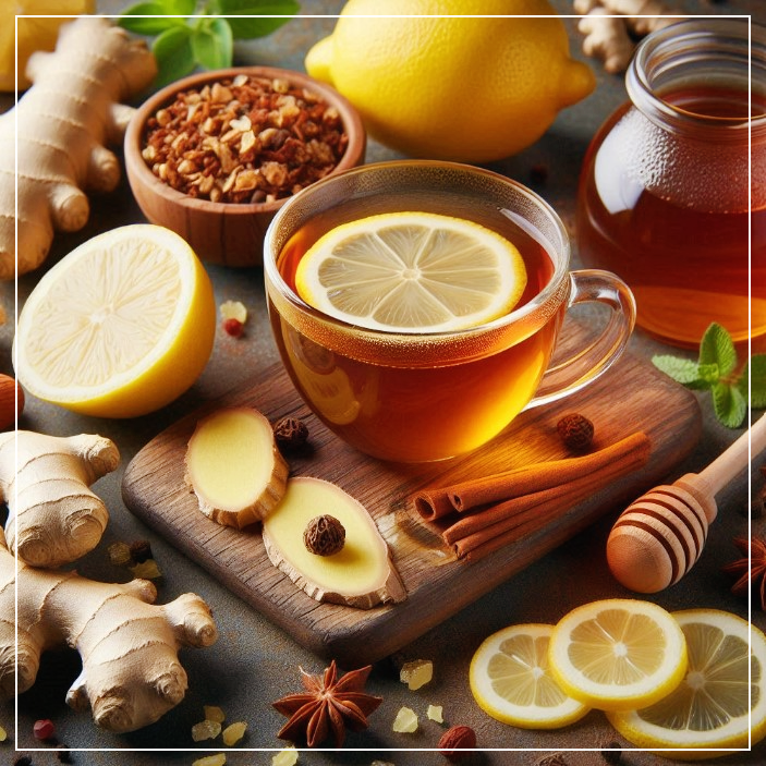 생강차에 꿀을 더하면 감미로운 맛과 함께 감기 예방 효과가 배가됩니다. 감기 기운이 있을 때 생강차에 꿀을 넣어 마시면 목이 한결 부드러워지고 따뜻함이 오래 지속돼요.