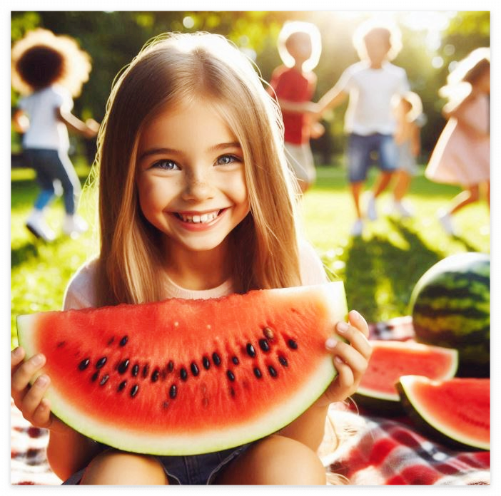 수박은 다이어트 간식으로 적합한 식품입니다. 칼로리가 낮아서 다이어트를 하는 중에도 안심하고 섭취가 가능합니다. 게다가 수박에는 수분이 많아 포만감을 느끼게 해 주어 과식을 예방할 수 있습니다. 또한 단 음식을 먹고 싶을 때 수박을 선택하면 설탕과 같은 인공당분을 줄일 수 있게 됩니다. 이는 고칼로리의 음식의 섭취를 줄여 체중 감량에 도움이 됩니다.