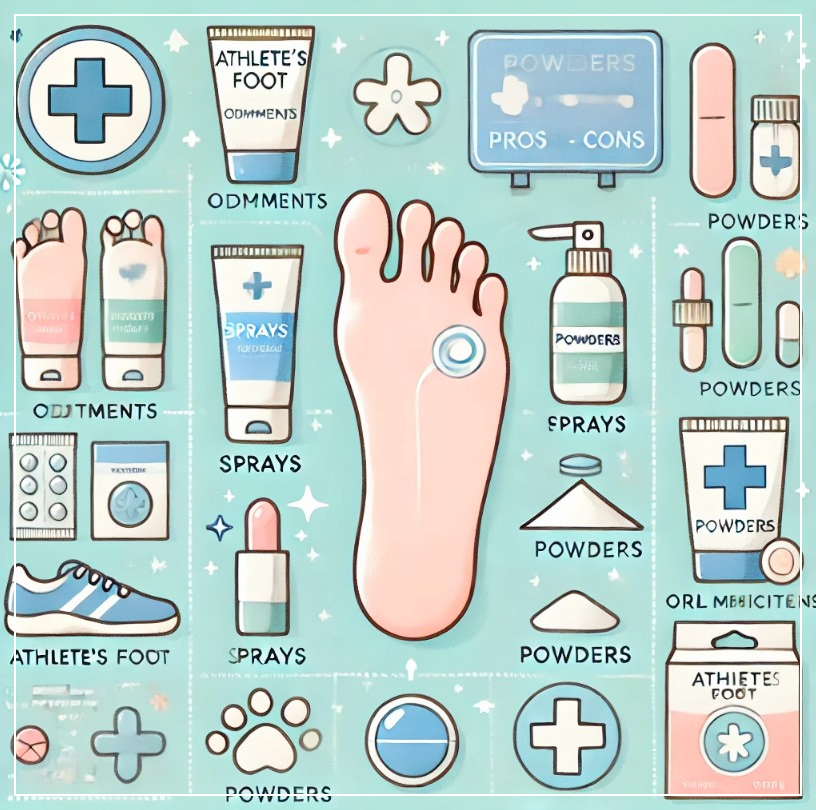 무좀 약은 크게 연고형, 스프레이형, 파우더형, 그리고 경구용 약으로 나뉩니다. 약국에서 흔히 구할 수 있는 것은 연고형과 스프레이형입니다.