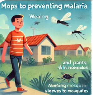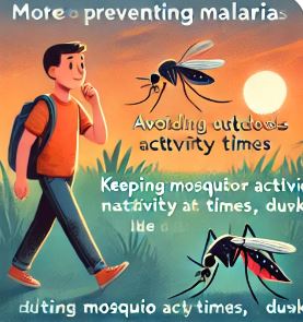 - 모기 퇴치제 사용: 말라리아를 전파하는 모기에 물리지 않도록 하기 위해, DEET 성분이 포함된 모기 퇴치제를 사용하세요. 노출되는 피부에 꼼꼼히 바르고, 필요시 자주 덧발라야 합니다.