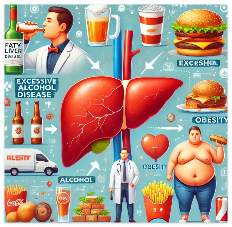 지방간의 가장 흔한 원인은 과도한 음주와 비만입니다. 그 외에도 다양한 요인이 지방간을 유발할 수 있는데요, 아래는 대표적인 원인들입니다.