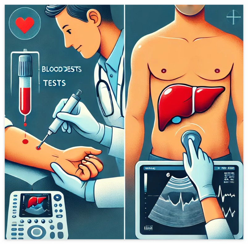 지방간은 주로 혈액 검사와 초음파 검사로 진단됩니다. 검진 중에 간 기능 수치가 높게 나오거나, 초음파에서 간이 비대해 보일 때 지방간을 의심할 수 있습니다. 추가로 CT나 MRI, 간 섬유화 검사를 통해 정확한 상태를 확인할 수 있습니다. 심각한 경우에는 간 조직 검사가 필요할 수도 있습니다.