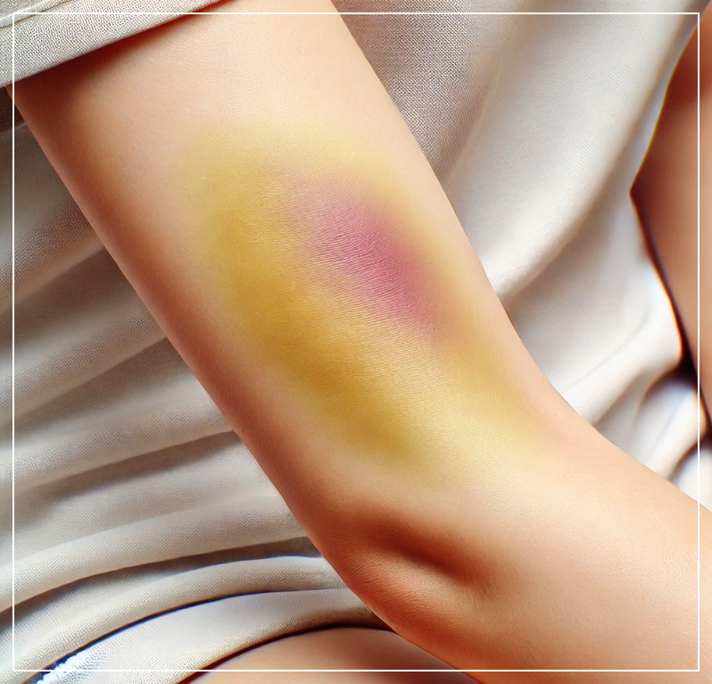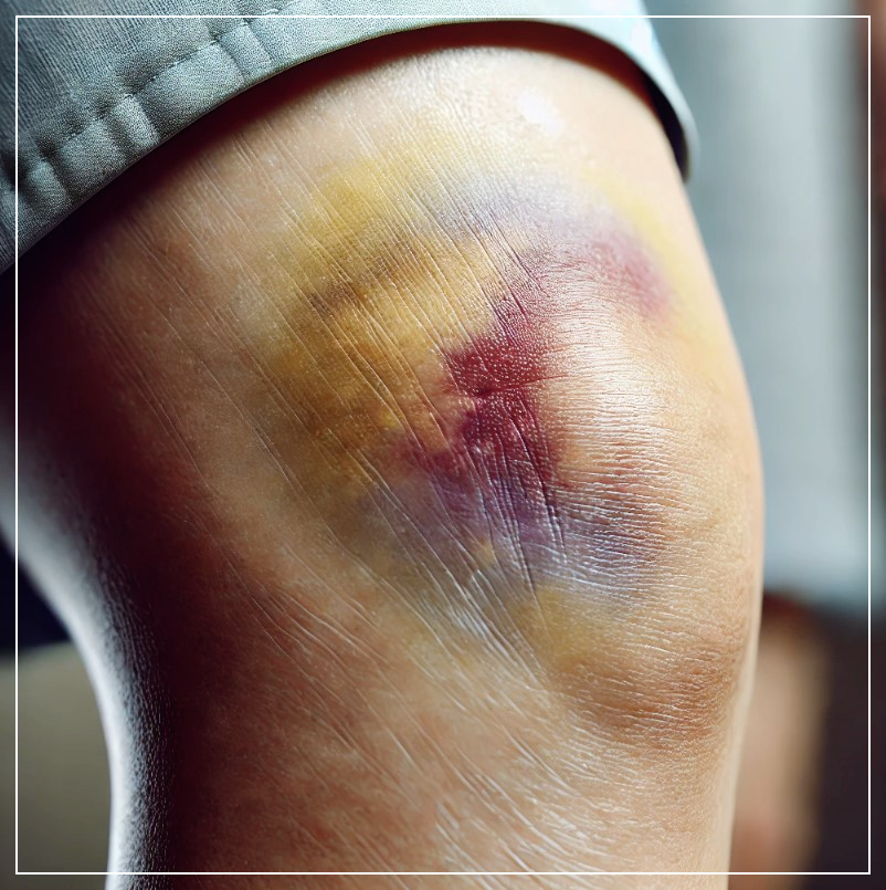 수술 후 허벅지가 푸르스름하게 멍들었어요. 부기도 심해서 처음엔 오히려 살이 더 찐 것처럼 보였습니다.