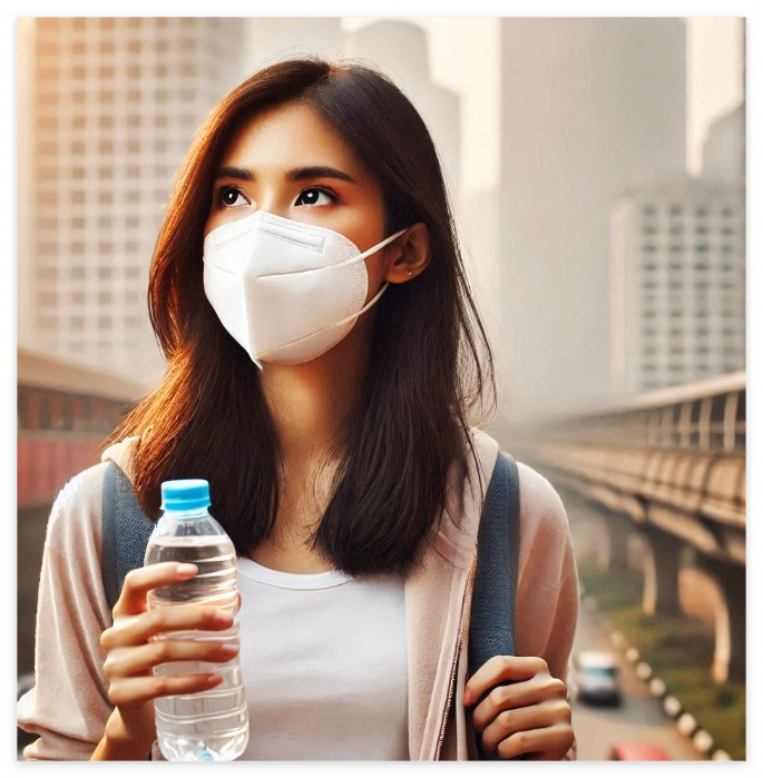 초미세먼지는 일반 마스크로는 막을 수 없습니다. 반드시 인증된 미세먼지 마스크를 사용하세요.