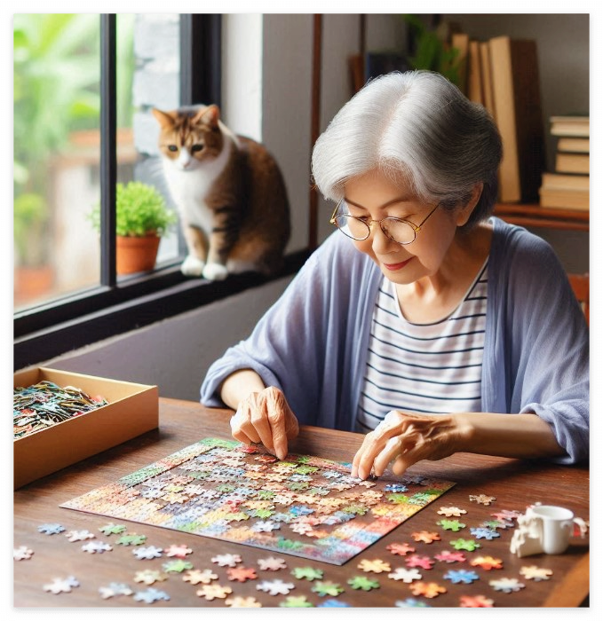 독서, 퍼즐, 보드게임 같은 활동은 신경망을 활성화합니다. 특히 그림 그리기를 하면 집중력과 손의 움직임을 통해 뇌를 자극할 수 있어요.