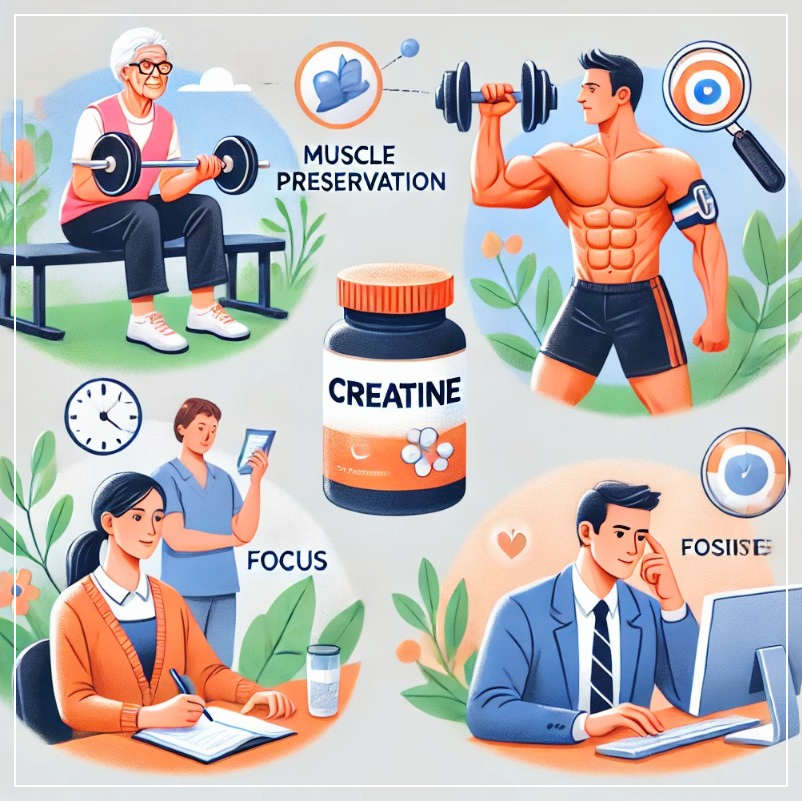 특히 노인의 경우, 크레아틴이 기억력 저하를 막고 근육 손실을 예방할 수 있다고 해요.