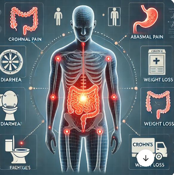 크론병의 증상은 염증의 위치와 심각도에 따라 다양하게 나타납니다. 대표적인 증상은 다음과 같습니다.