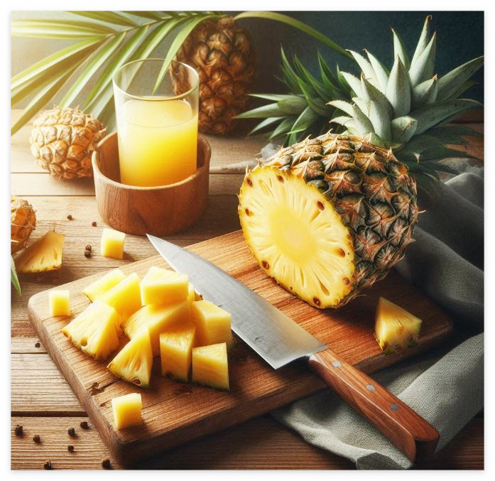 파인애플에는 단백질을 분해하는 브로멜라인이라는 효소가 함유되어 있습니다. 브로멜라인은 단백질을 분해하고 소화를 촉진합니다.