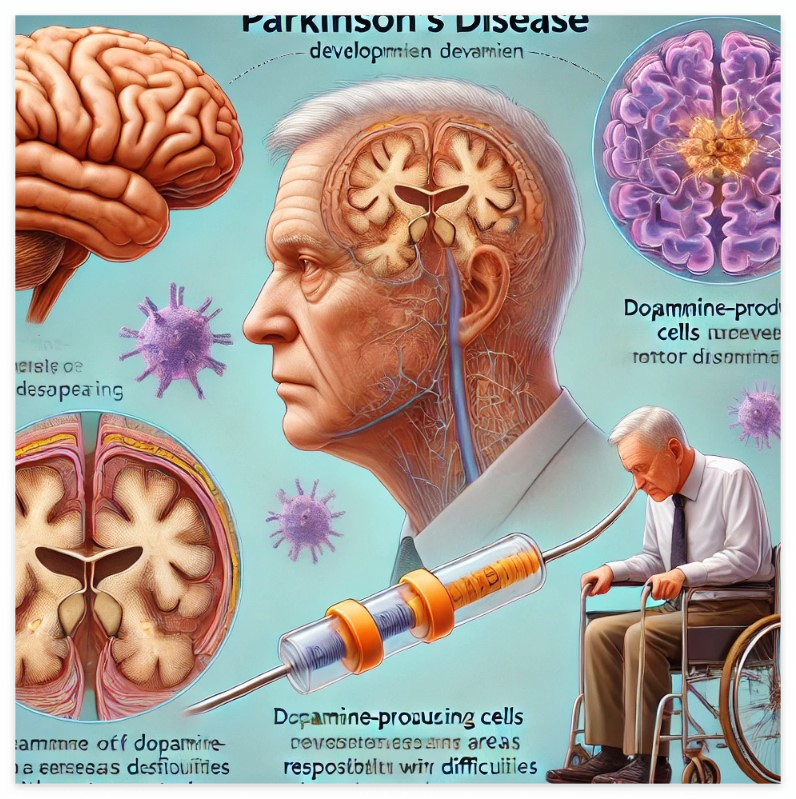파킨슨병은 뇌 속에서 운동을 조절하는 도파민이라는 신경전달물질을 만드는 세포들이 서서히 사라지면서 발생하는 만성 진행성 질환이에요.