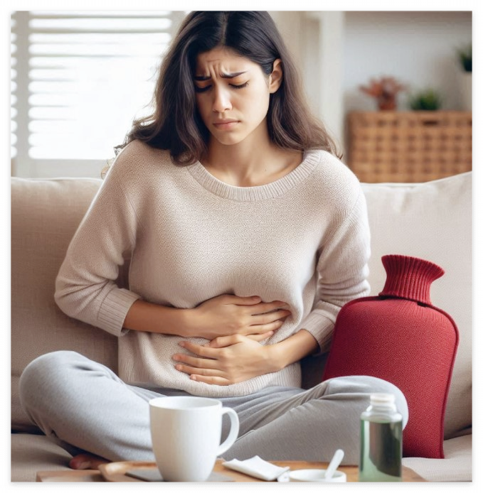 아랫배가 뻐근하거나 날카로운 통증이 느껴집니다.