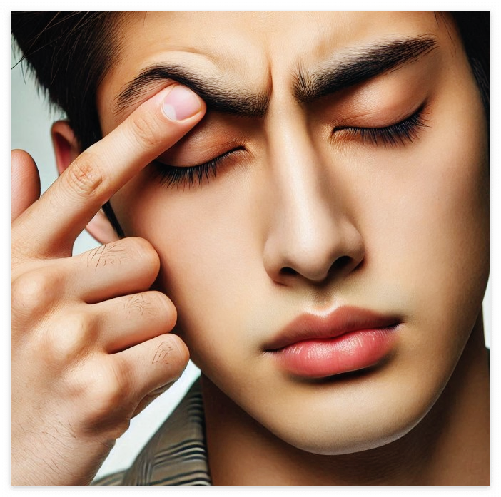 - 눈썹 위를 엄지손가락으로 눌러가며 천천히 마사지합니다.