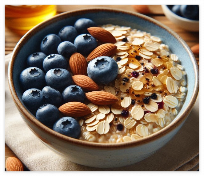 바나나의 불용성 섬유질과 오트밀의 수용성 섬유질이 변비 해소와 콜레스테롤 배출에 도움이 됩니다.