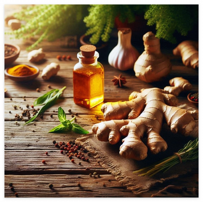 생강은 소화 효소 분비를 촉진하고 소화를 돕는 데 탁월합니다. 진저롤과 쇼가올 성분은 소화 불량과 속 더부룩함을 완화해 줍니다.