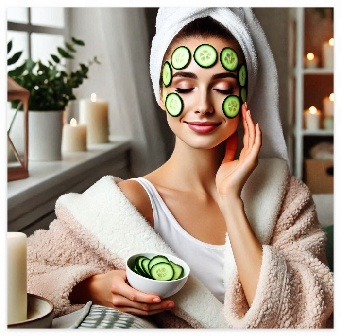 수분 함량이 높은 오이를 얇게 썰어 얼굴에 올려놓으면 붓기와 열감을 가라앉히는 데 도움이 됩니다.