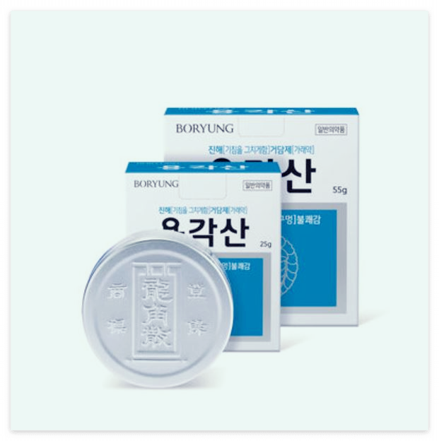 용각산은 감기에 좋다고 알려진 약입니다. 일본 제약 회사인 류카쿠산(용각산)에서 가루약 형태로 만들어졌습니다. 기관지에 좋기로 유명한 행인, 감초, 길경이 첨가되어 있어요.