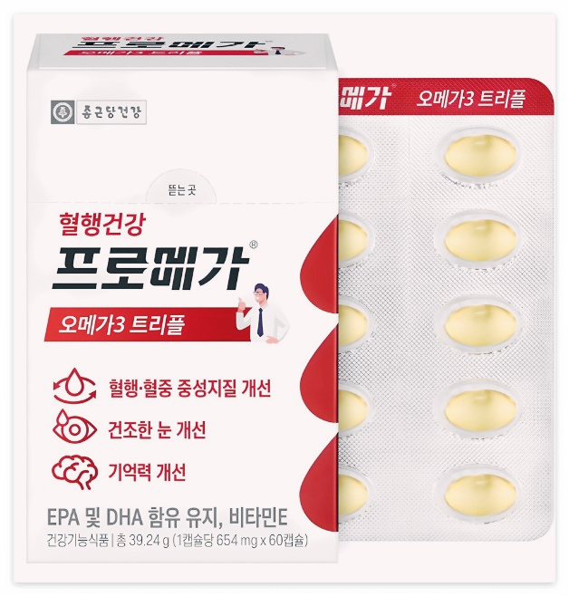 종근당건강 프로메가 오메가3 트리플 장용성은 간편하게 섭취할 수 있는 오메가3 제품으로, 눈 건강과 뇌 기능, 그리고 심혈관 건강을 챙기고 싶은 사람들에게 강력히 추천드립니다.