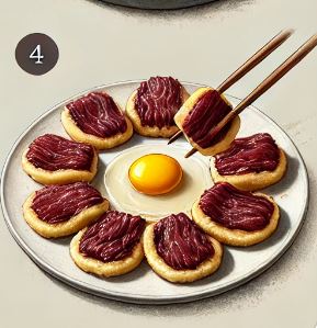 소고기 준비: 얇게 썬 소고기를 키친타월로 살짝 눌러 핏물을 제거한 후, 소금과 후추로 간을 해 둡니다. 밀가루 묻히기: 소고기에 밀가루를 얇게 묻혀줍니다. 밀가루는 얇게 묻혀야 달걀 옷이 잘 입혀집니다. 달걀물 준비: 달걀을 잘 풀어 소금을 약간 넣고 달걀물을 만듭니다. 굽기: 달걀물을 입힌 소고기를 달군 팬에 식용유를 두르고, 약한 불에서 앞뒤로 노릇하게 구워줍니다. 완성: 노릇하게 익은 육전을 접시에 담고 취향에 따라 간장 양념장을 곁들여 먹으면 됩니다.