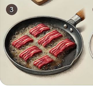 소고기 (불고기용 또는 우둔살, 홍두깨살) 300g 달걀 2개 밀가루 3큰술 소금, 후추 식용유