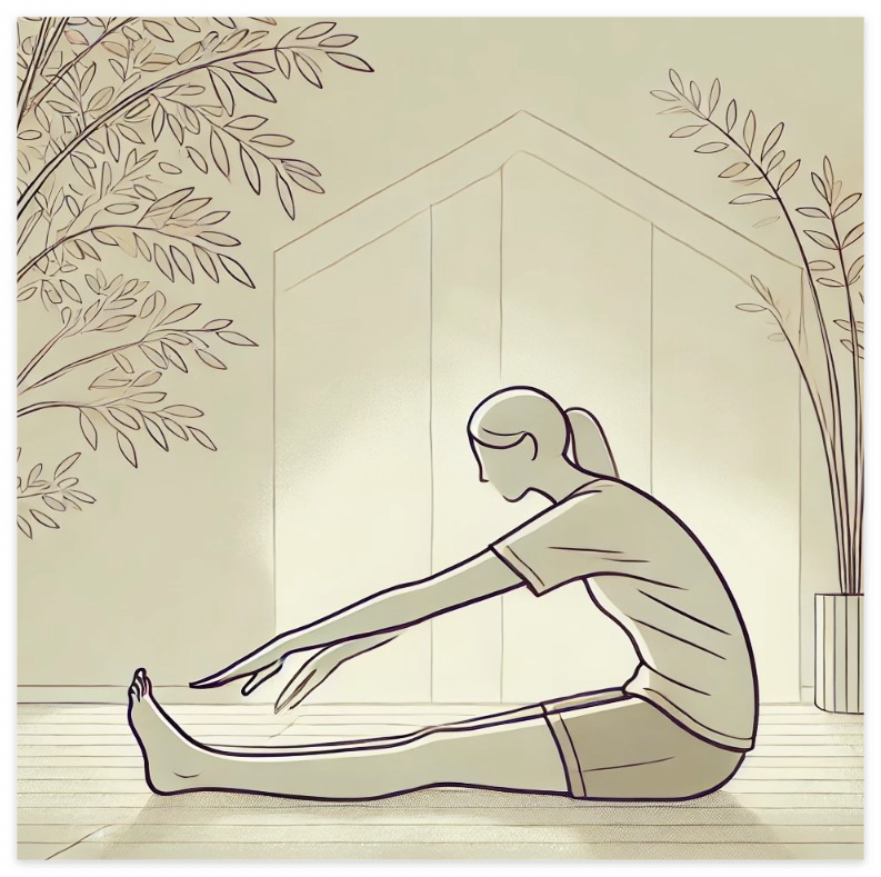 - 상체를 앞으로 숙여 발끝을 향해 손을 뻗습니다.